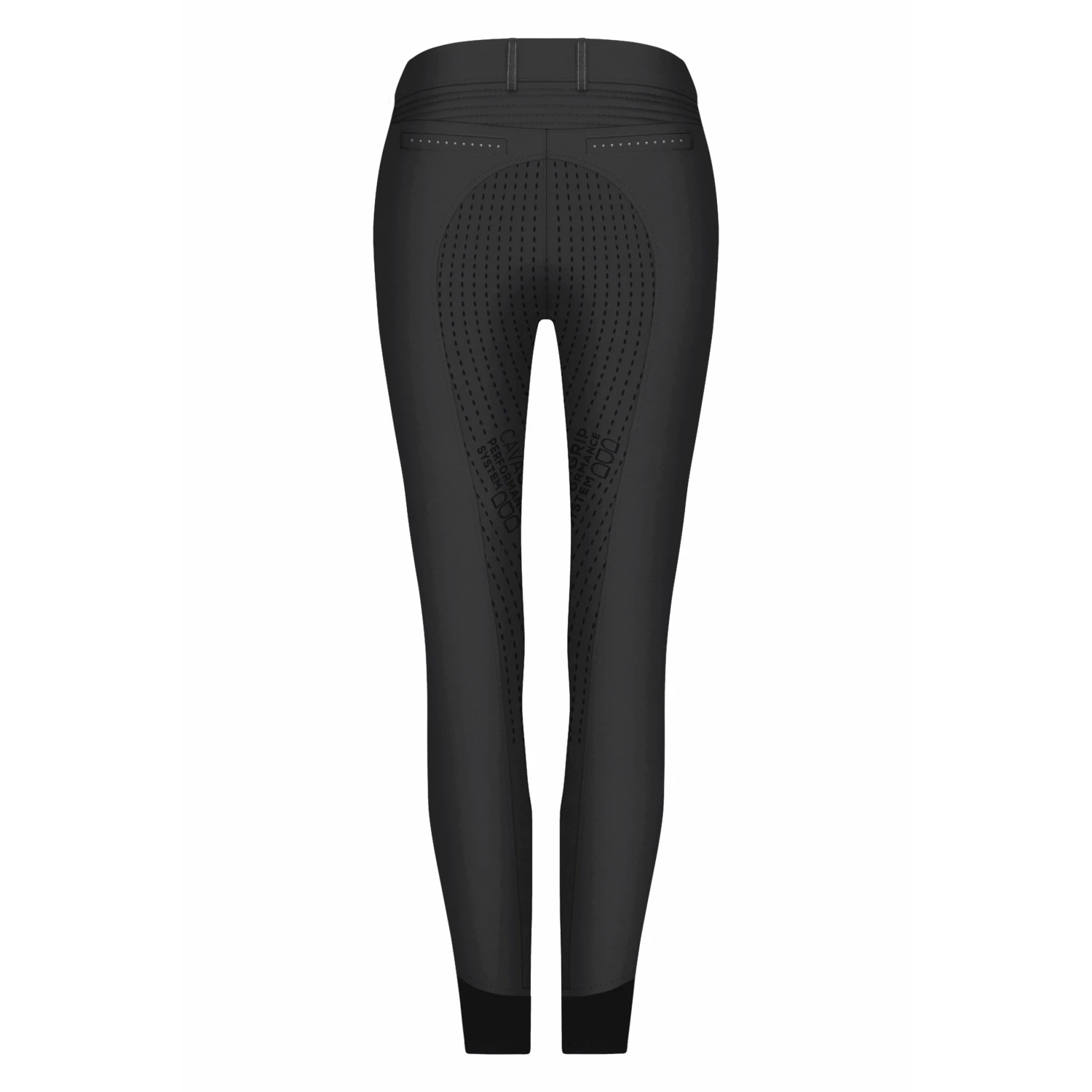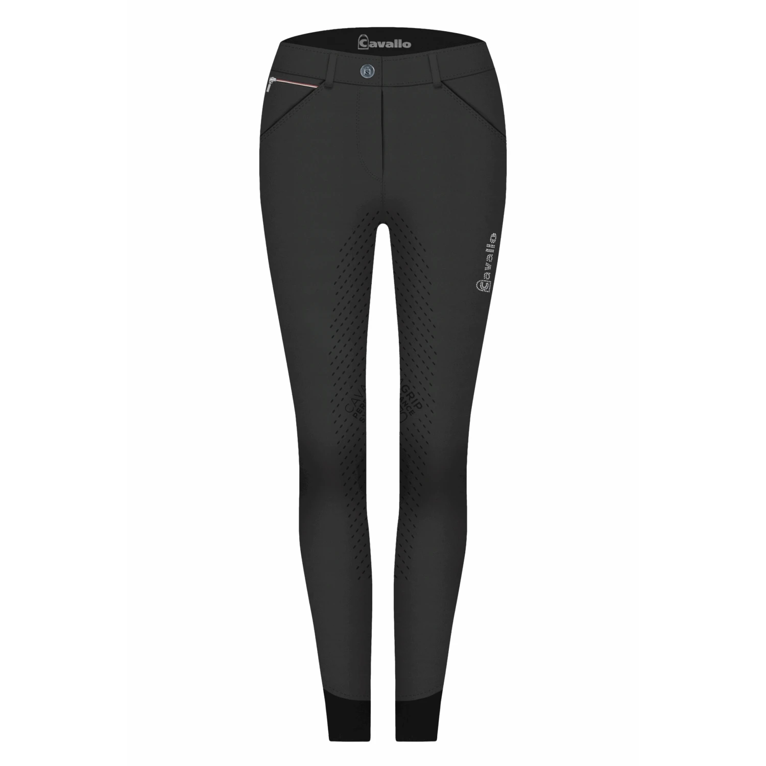 The CALIMA GRIP is a sporty style breech showing a little detail with stitching and paneling across the lower back and some small metallic stud application over the pocket.