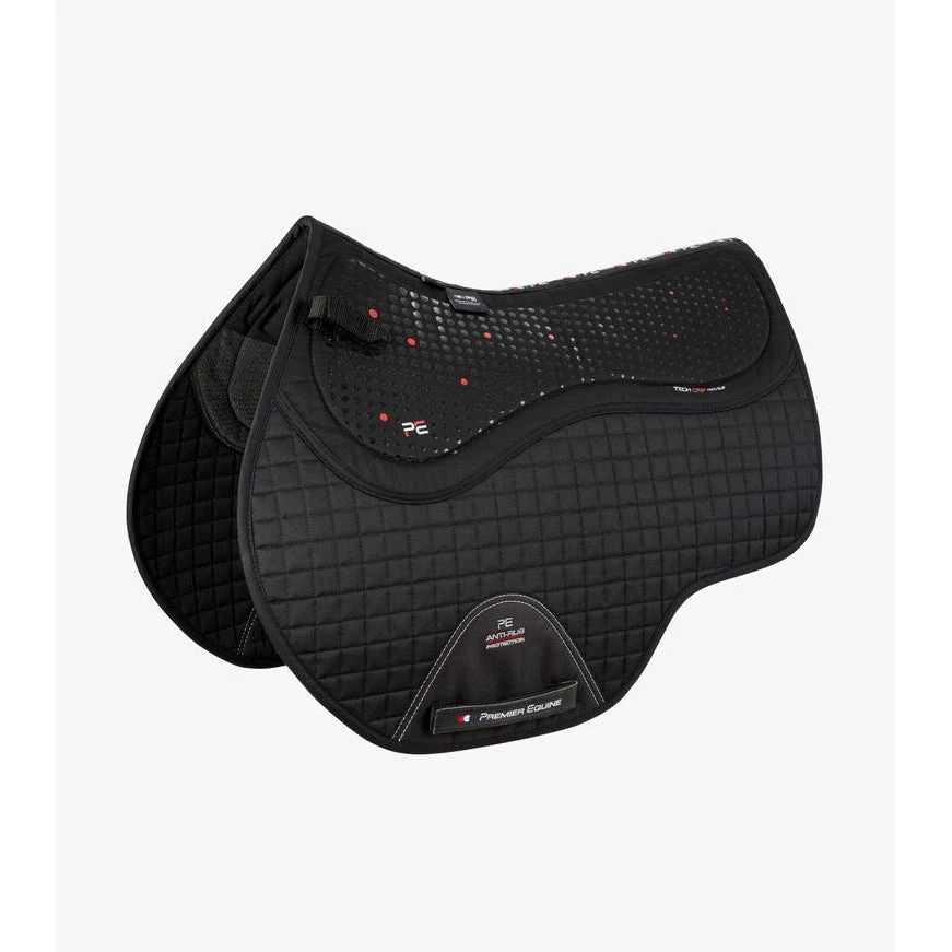 The Tech Grip gel upper is shaped to fit neatly under your saddle, helping to reduce unwanted movement and slipping. The upper section is also gently cushioned with foam and lined with soft, anti-slip fabric which is comfortable against your horse’s skin and further prevents slipping.Patterned stitching on the quilted lower section gives the pad an exclusive look and feel. A 600 denier polyester girth panel provides anti-rub protection and our adjustable Velcro girth straps and adjustable D loop straps allow you to easily secure and adjust the pad to your saddle. The perfect anti-slip jump square for everyday or competition use.