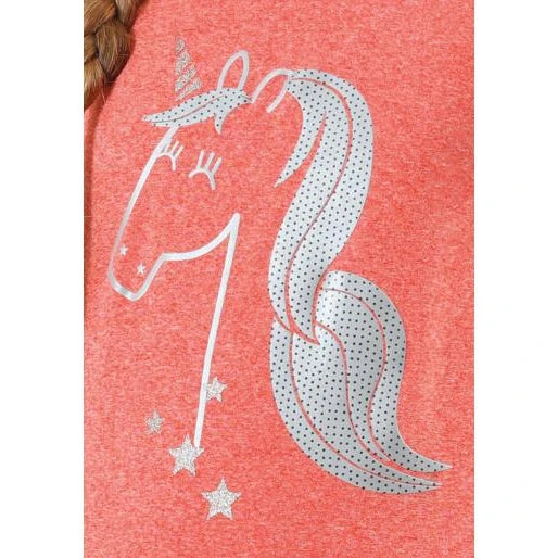 Machine washable (30°)Wearer trial comments; I love this top, the colour is fun and I like the unicorn on the front. I wore this riding t-shirt for pony camp when it was hot and it kept me cool and comfortable all day long.