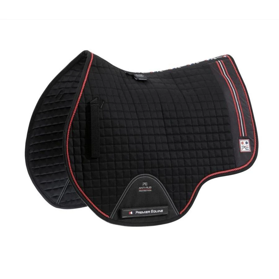 Our Sports European Cotton GP/Jump Square boasts a luxury, professional appearance. Made from beautifully quilted cotton, it is breathable and helps to draw moisture. A European style cutaway hem and decorative twisted ropes combined with stylish, ‘PE’ branded strip panels to the rear create a crisp, sporting aesthetic. Adjustable Velcro straps easily secure the pad under saddle and our signature 600D anti-rub protection zones help to prevent friction and rubbing from the girth. A stunning saddle pad, perfect for everyday or competition use under general purpose or jump saddles.
